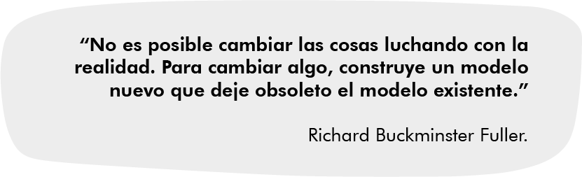 Esta frase de Richard Buckminster Fuller recopila la esencia del trabajo de un agile coach que participa en una transformación agile de una empresa. Porque para cambiar las dinámicas internas de una organización, sus procesos y patrones de comportamiento, difícilmente se logra luchando con la realidad de la organización; es necesario ir construyendo un nuevo modelo, que sustituya al actual por medio de cambios graduales y cocreados con la propia organización.