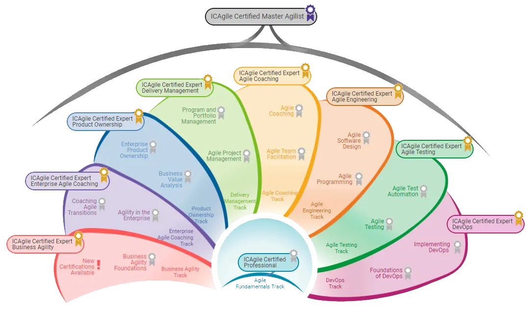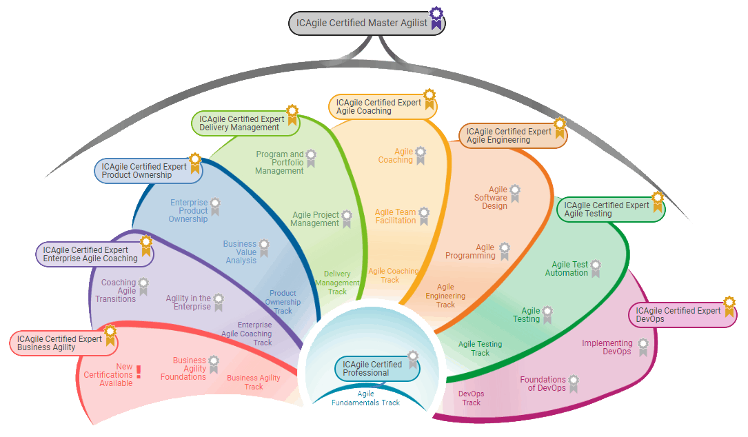Estas son las 9 disciplinas (fundamentals + 8 disciplinas específicas) que componen actualmente el Roadmap ICAgile. No se descarta que aparezcan nuevas en algún momento o que alguna otra se modifique, está basado en el enfoque Agile de inspeccionar y adaptar.