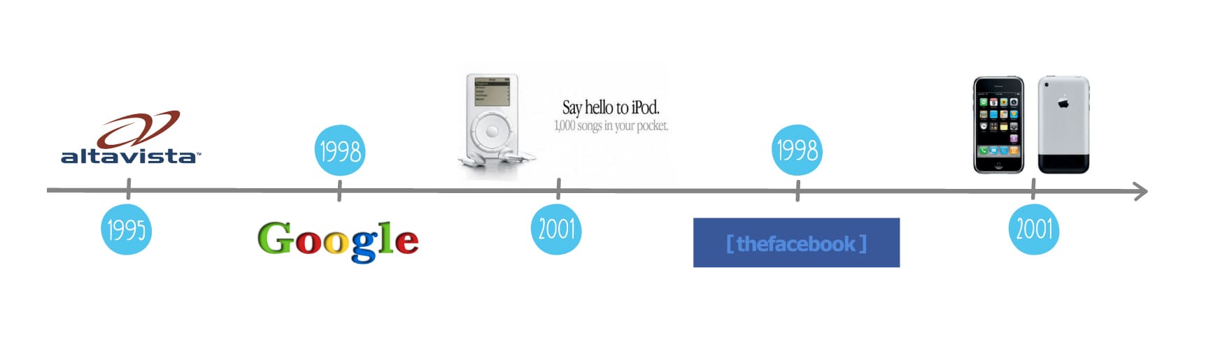 Mientras se discutía si estábamos en el último año del siglo XX o en el primero del XXI, el espacio dedicado a la tecnología en las conversaciones y en los telediarios trataba sobre todo del buen momento bursátil de las empresas ‘.com‘. Aún no teníamos iPhone (2007), no existía Facebook (2003) y ni siquiera teníamos un iPod (2001). Aunque, si habías dejado Altavista (1995), al menos ya podías buscar en Google (1998) información relativa a esta burbuja.