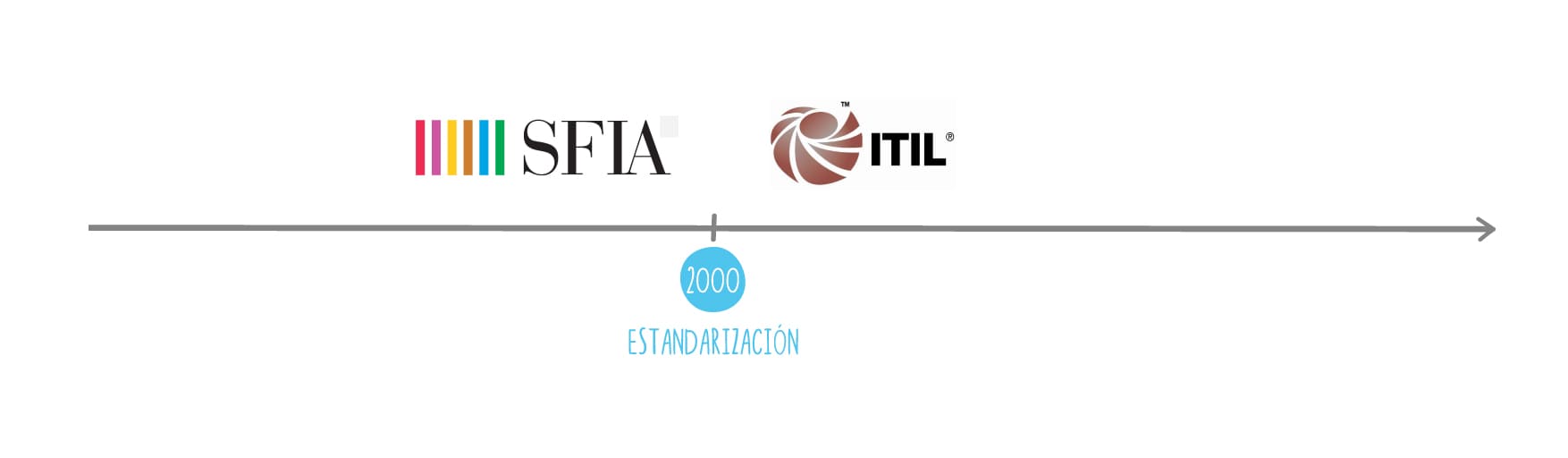 Pero, poco a poco, a los informáticos se les empezó a exigir competencias blandas, y todos los empleados debían al menos tener conocimientos informáticos a nivel de usuario. La estandarización empezó en el año 2000. No es casualidad que ese mismo año se publicaran ITIL v2 y SFIA. Estos dos marcos ‘creaban’ de facto los procesos y las profesiones de IT. Y ya se tenía una base común que cualquier empresa podría adoptar (adaptándola a su manera) para definir qué se debía hacer en el área de IT, quién debía hacerlo y qué competencias debería tener. Todo un hito, que además ha perdurado en el tiempo de la mano de la evolución de estos marcos, que se han ido actualizando, y de la llegada de otros como Agile, DevOps, European Competence Framework (e-CF), COBIT, etc.