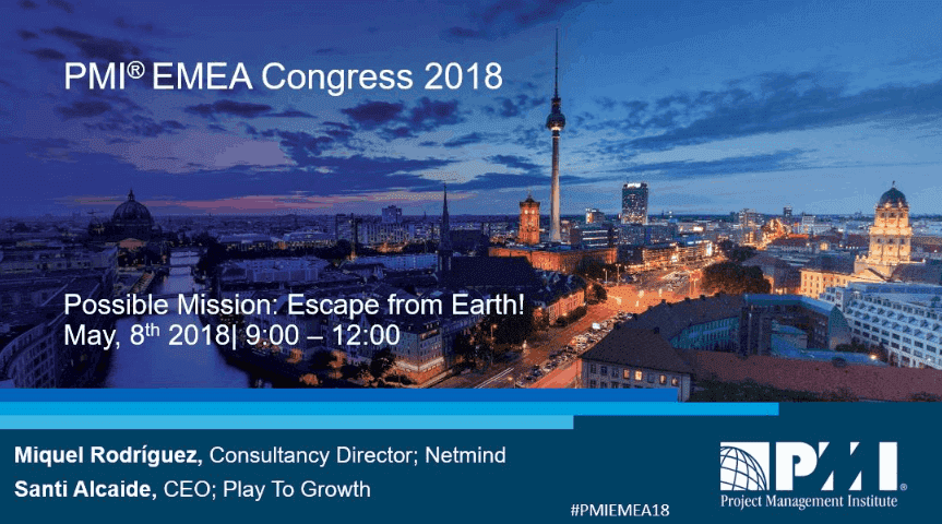 El workshop que facilitaron Santi y Miquel en el PMI® EMEA Congress, tuvo como título “Escape from Earth! A Project Management Board Game”.