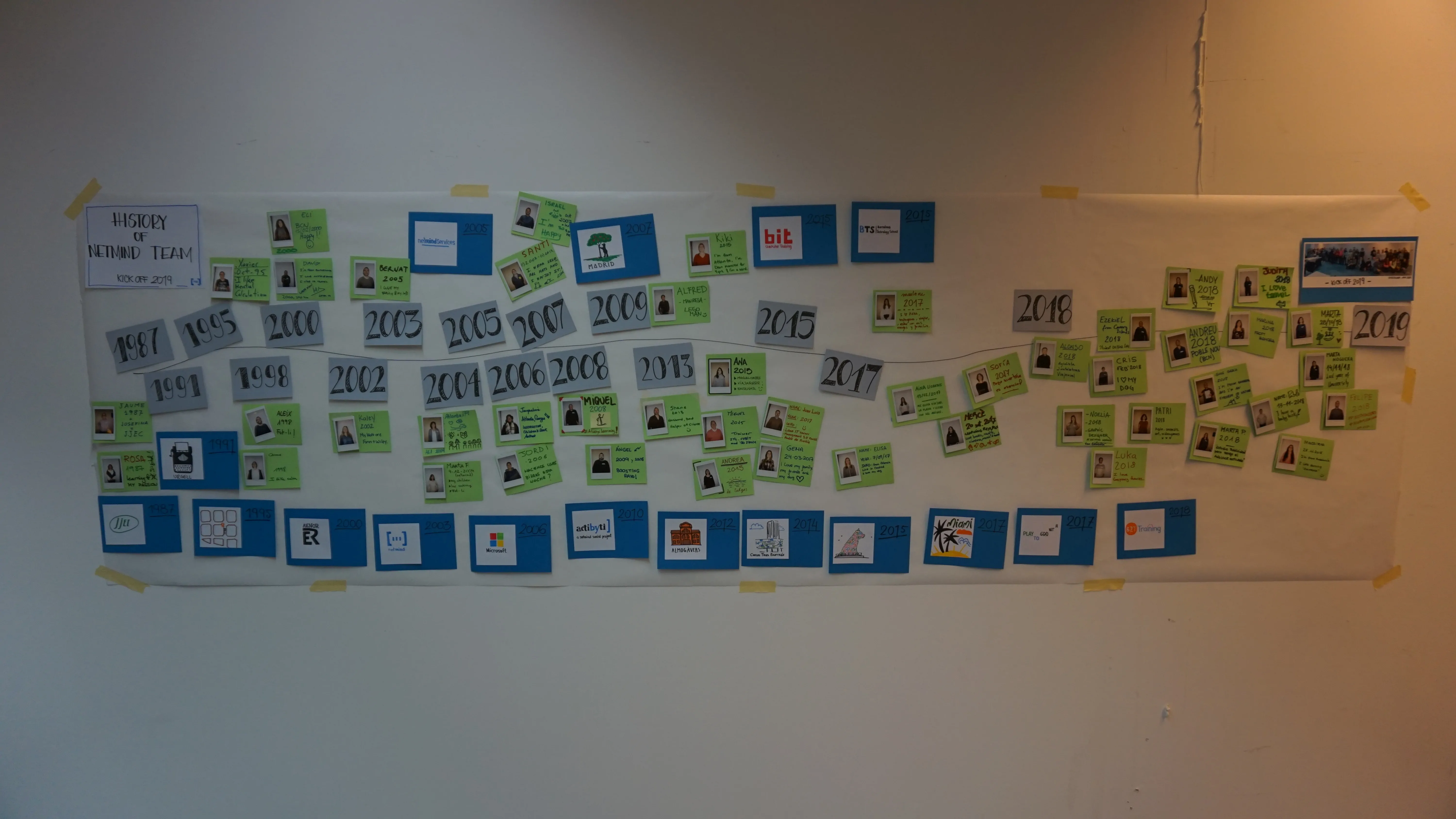 El segundo día empezó a ritmo de Queen. ¡EO! ¡EH EH OH! Así es como Miquel Rodríguez revivió a Freddie Mercury, y por unos segundos, nos convertimos en la audiencia del LiveAid. Justo después de este momentazo, Miquel nos tenía preparada una actividad emocionante. Una foto, un nombre, una fecha y una descripción… Y entre todos completamos un time line de la historia de Netmind. Ver plasmado en un mural todo el recorrido de este gran proyecto, fue maravilloso. ¡Esto no para de crecer!