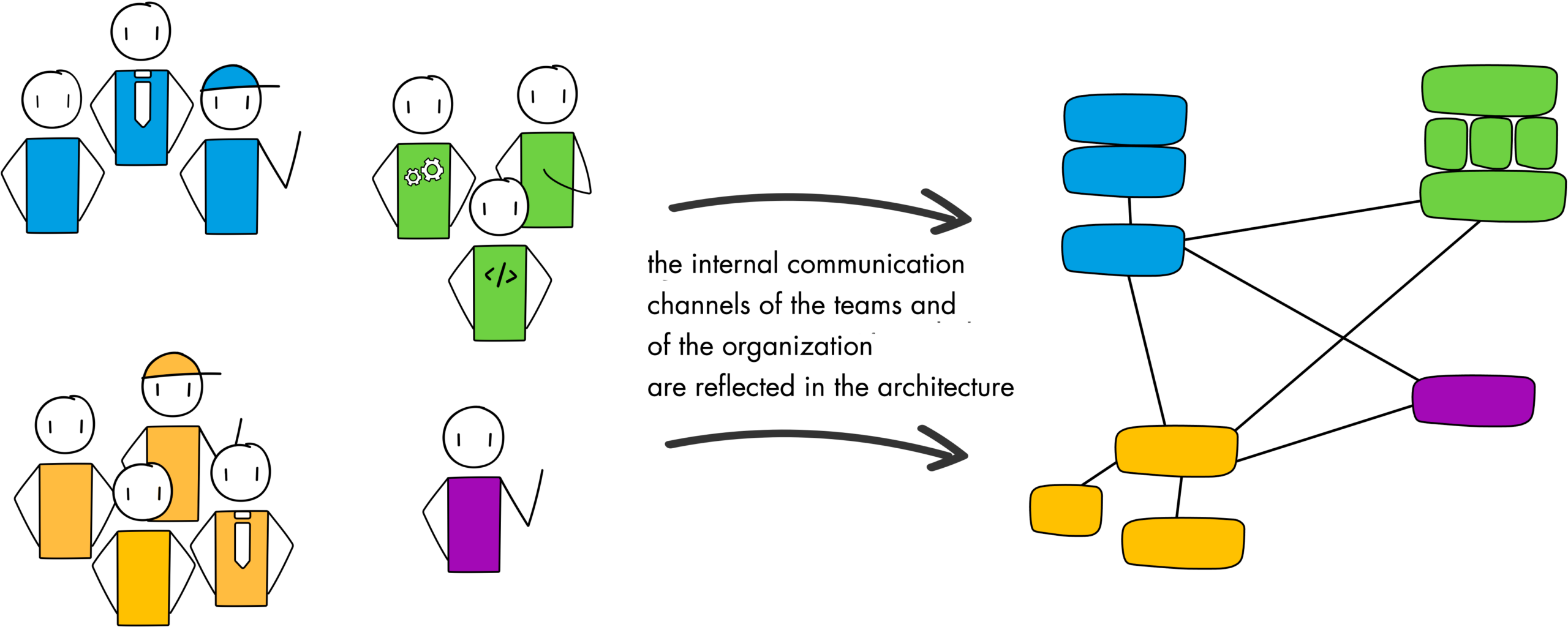 Conway observed that the communication structures of organizations directly influence system design. Conway’s Law points out the strategic implications of organizational design-the structure and interaction of teams-on the architecture of software systems.
