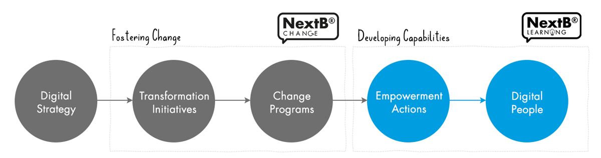 NextB® Learning is our innovative teaching methodology that was developed by our training team based on the principles, techniques, and practices of Training from the Back of the Room. Once change initiatives and programs have been designed, it is time to develop the capabilities needed to adopt change and create a learning culture built on empowered people.